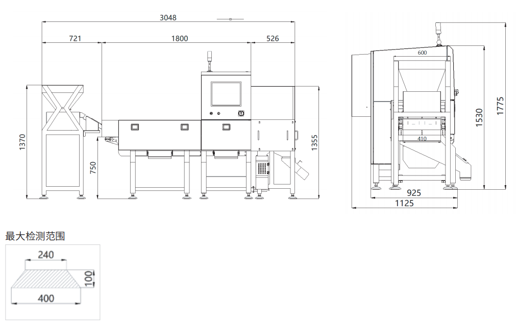 備注:可檢的異物尺寸與產品內物質成分、包裝材料、厚度大小等參數有關系,請以實際產品測試結果為準。